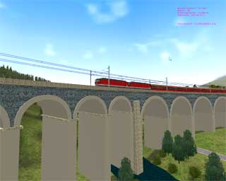 Nachbau jedes einzelnen Viaduktes aufgrund von Originalbildern und technischen Daten, sowohl in der Textur wie auch der genauen Geometrie, d.h. Beachtung der Radien, der Steigungen in den Kurven, der Gewölberadien und der Spannweiten. Tunnelportale und alle wichtigen Gebäude, die genauen Steigungen bis 25 Promille, unter Beachtung der genaue Höhenangaben.